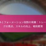 3-2-4-1フォーメーションの主要なトレーニングの焦点は何ですか? 3-2-4-1フォーメーションの選手にとって重要なスキルは何ですか? 戦術教育は3-2-4-1フォーメーションの活用をどのように向上させますか? 3-2-4-1フォーメーションの他のフォーメーションに対する利点は何ですか?